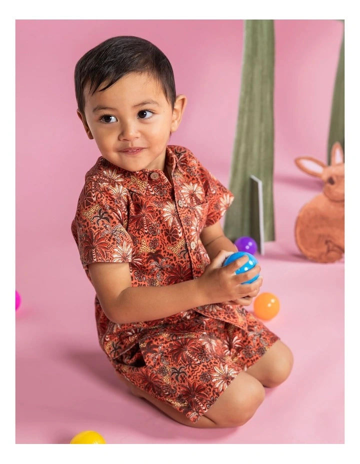 TheNative Short byAnimal Crackers is made from yardage printed 100% cotton material. It features an earth coloured jungle/animal print, relaxed fit, elastic waist with drawstring, back pockets, and branded badge. Team back with the Native Shirt for the ultimate summer style.