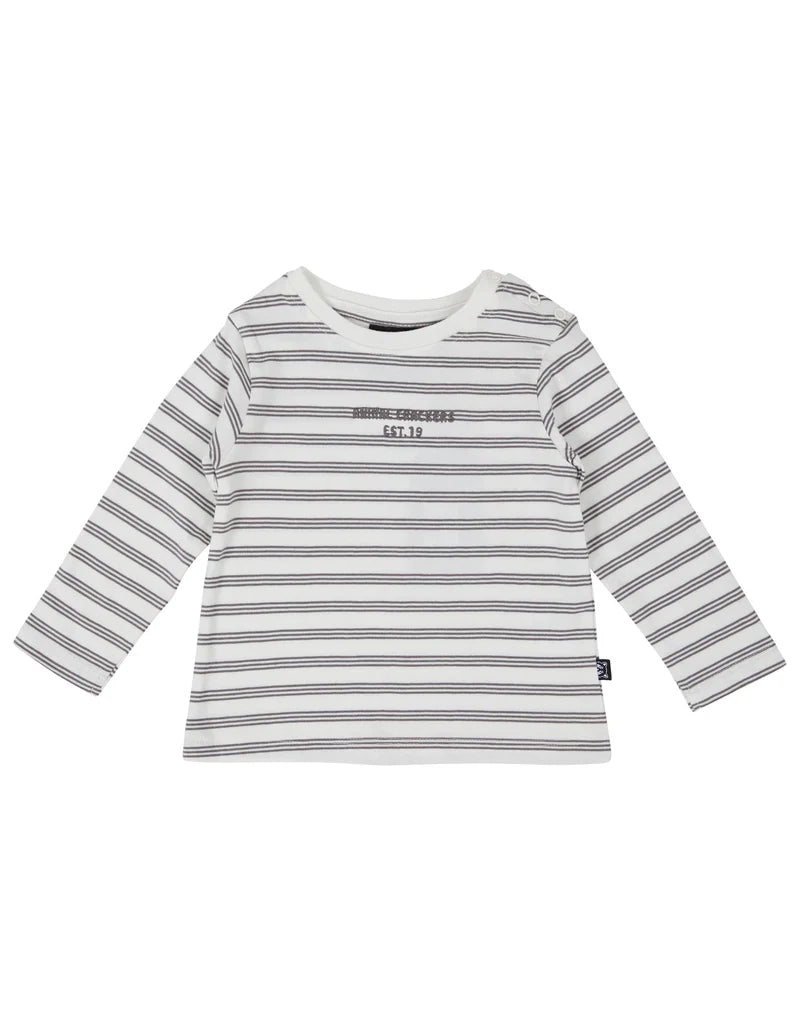 The Everlasting L/S Tee by Animal Crackers is the perfect everyday Tee. The tee features an all over stripe in our regular long sleeve shape with shoulder snaps to easily get on and off over the head. The tee has a small chest print and a contrasting neck band, creating the perfect addition for the season.