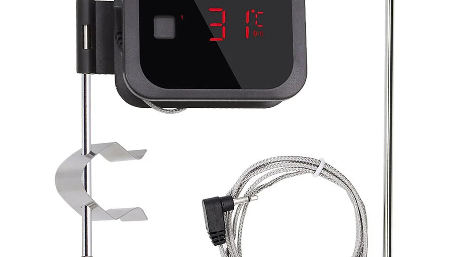 Key Features: Smart wireless digital thermometer that connects to your app via bluetooth for convenient and precise temperature tracking Comes with a barbecue thermometer with two probe sockets, two probes, and a handy instruction manual for proper use