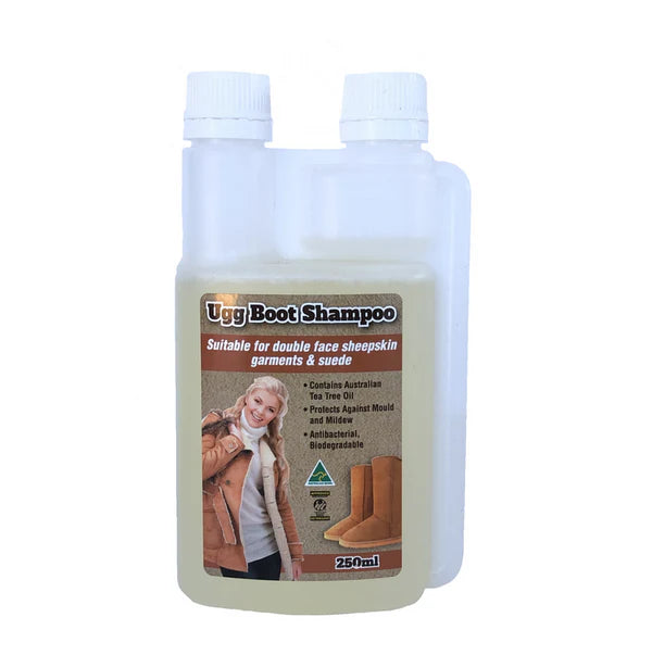 Sheepskin Double Face Shampoo with Conditioner contains Australian Tea Tree Oil which protects against mould & mildew. Antibacterial which protects against bacterial growth, eliminating cross infection, & prevents odours. 250 ml, 8.46 Fl OZ
