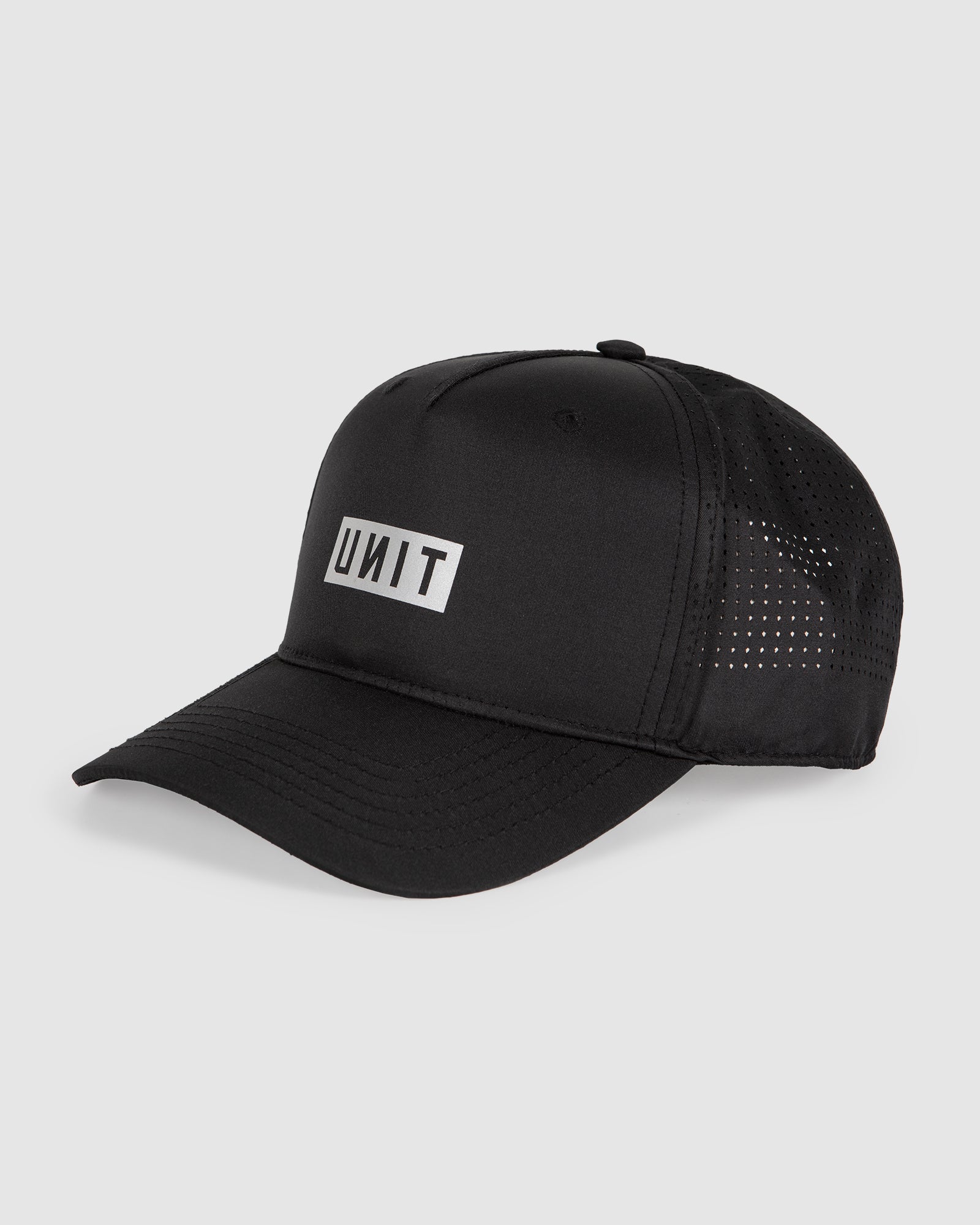 Stay cool and comfortable with the UNIT Atles Athletic Trucker Cap. Featuring a 5-panel curved peak design, laser-perforated panels for breathability, and a reflective print for added visibility. Finished with internal branded taping, a back woven label, and an adjustable snapback closure for the perfect fit.