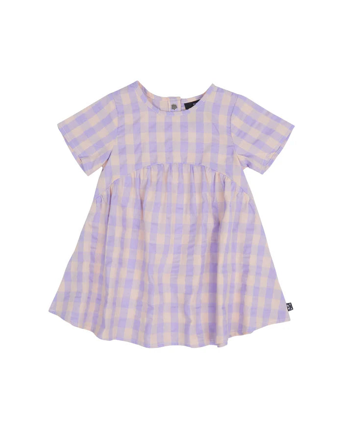 Featuring a relaxed fit, flowy dress, short sleeves, checked print, stunning contrasting colourways.