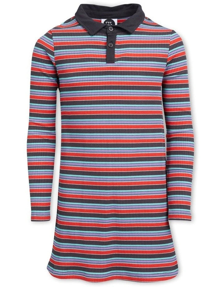 The All Sorts Rugby Dress by Eve Girl is a must-have staple for the season. The dress features a stripe rib fabric, with long sleeves and a contrasting front button placket and collar. The aline shape of the dress is perfect for a comfortable and stylish fit, for everyday wear.