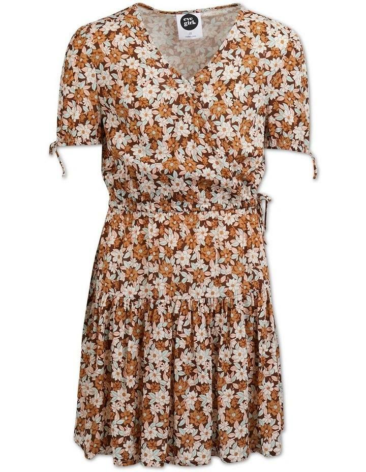 The Willa Floral Dress is made from 100% woven Viscose and features and all over floral yardage print. The dress has a crossover top body with a self fabric tie on the front left waist, and an elastic waist for comfort. The sleeves have an elastic edge with a self fabric tie and the skirt of the dress is relaxed and finished with a self fabric frill around the hem.