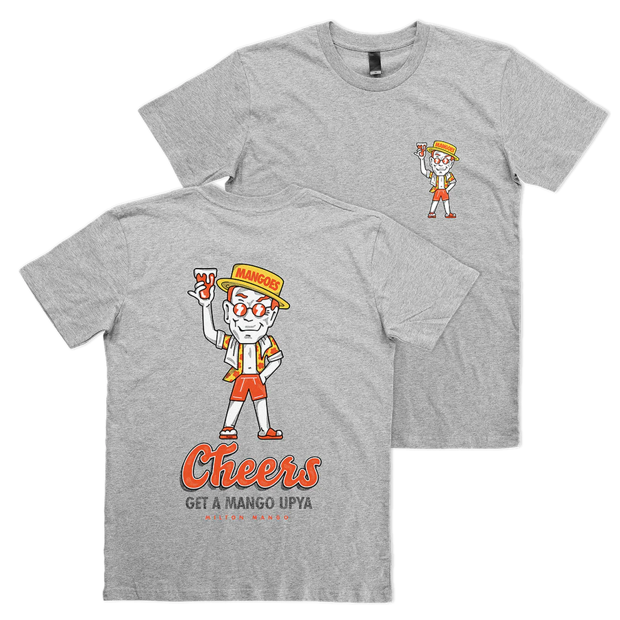 Double-sided T-Shirt (Small Chest Print, Large Back Print), 100% combed cotton jersey knit, 185 GSM combed cotton crew neck t-shirt. High quality front print so you can cheers getting a Mango up ya in style