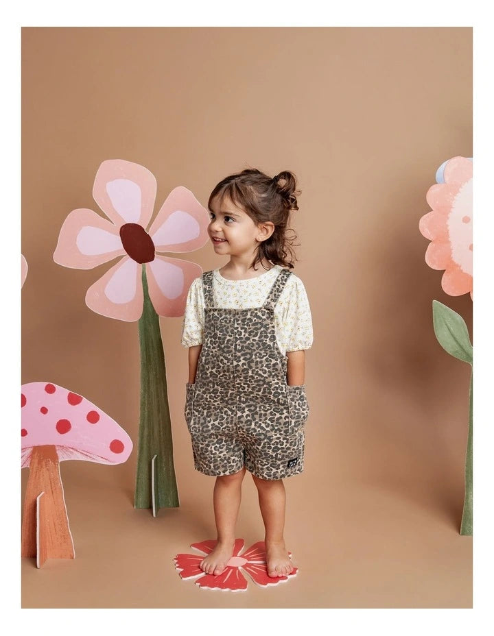 The Blooms Top by Animal Crackers is a playful and stylish rib tee, perfect for summer days. Crafted from a soft, stretchy rib fabric, it features an all-over floral yardage print, puff sleeves with elastic cuffs, and a classic round neckline with snap closure at the side for easy dressing. Finished with a branded flag label, this top pairs effortlessly with shorts, skirts, or denim for a cute everyday look.